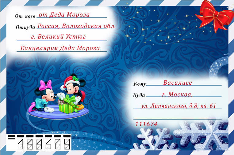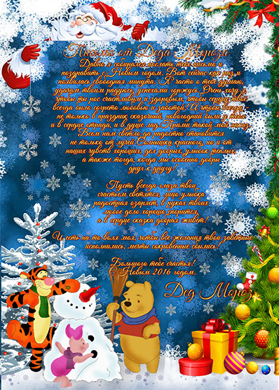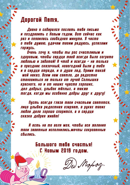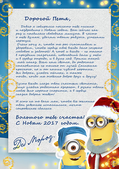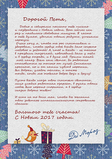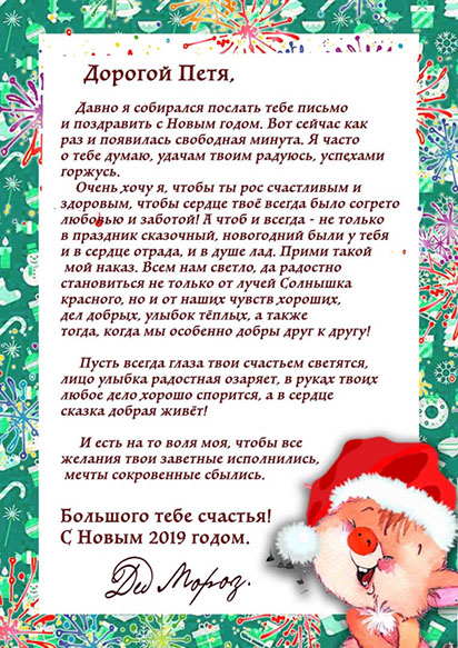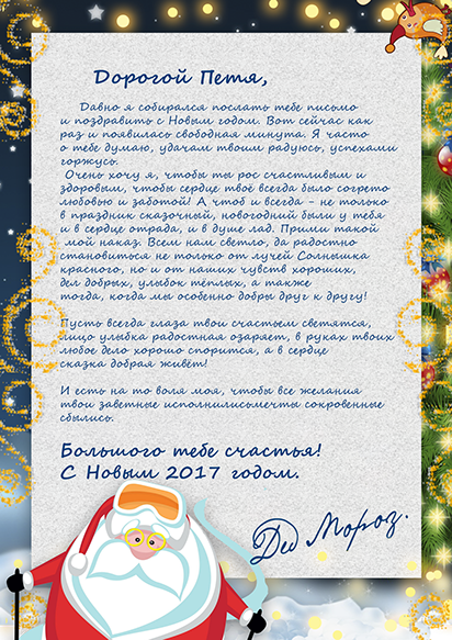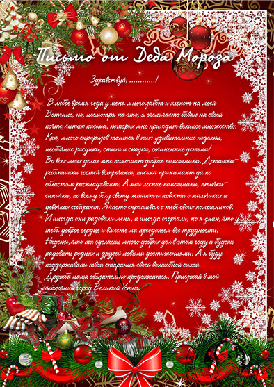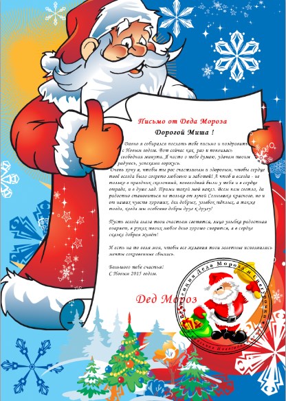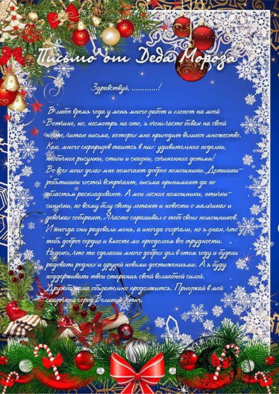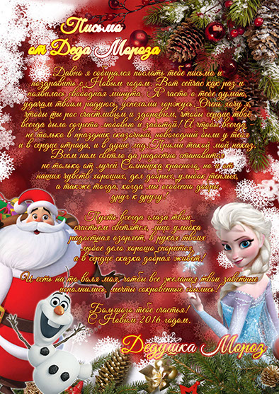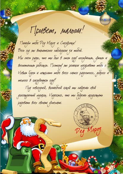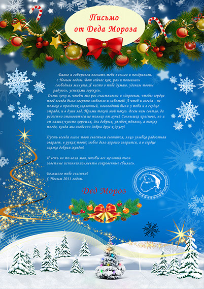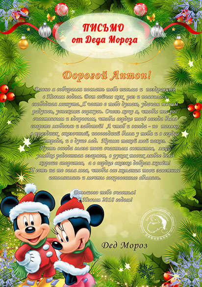 - Именное письмо от Деда Мороза, отправляется по электронной почте