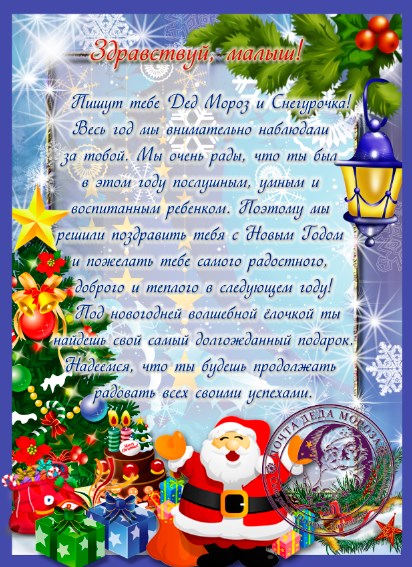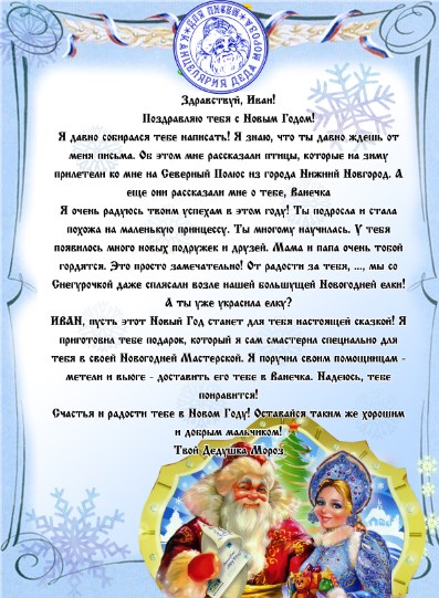 - Именное письмо от Деда Мороза и именная грамота в электронном виде