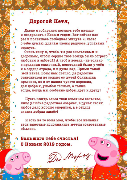 - Именное поздравление для ребенка (в комплекте: конверт упаковочный (обычный), письмо, грамота за хорошее поведение, отправляется «Почтой России»)