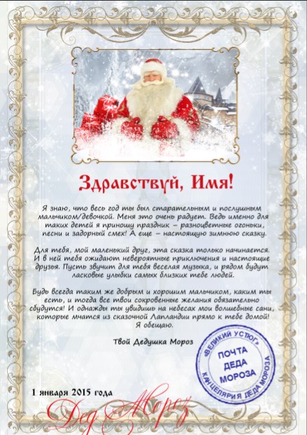 - Именное письмо от Деда Мороза и именная грамота в электронном виде