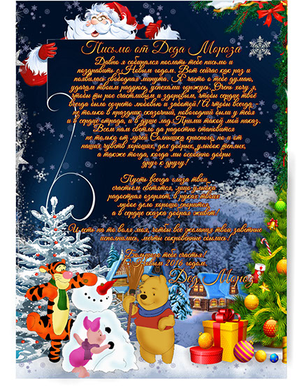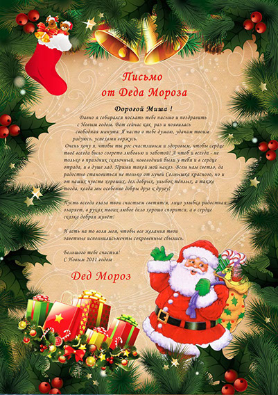- Именное письмо от Деда Мороза, отправляется по электронной почте
